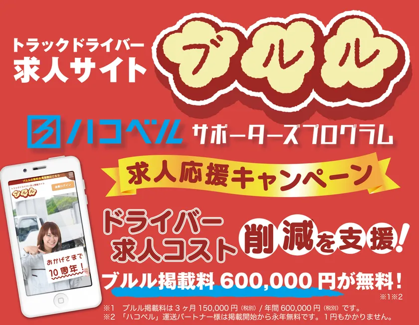 【「ハコベルサポーターズプログラム」とドライバー求人サイト「ブルル」の提携で、ドライバー人材採用を力強く支援。ハコベル会員は掲載料無料を実現】