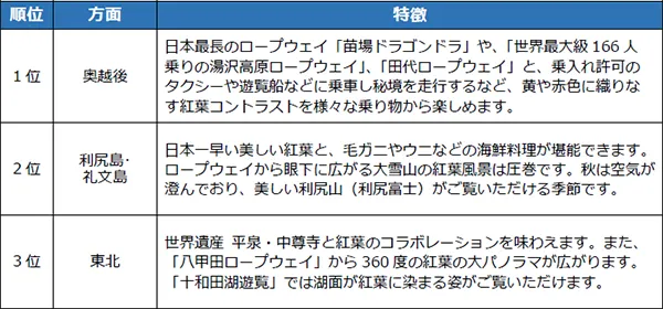 ◆紅葉人気3位方面(東北)
