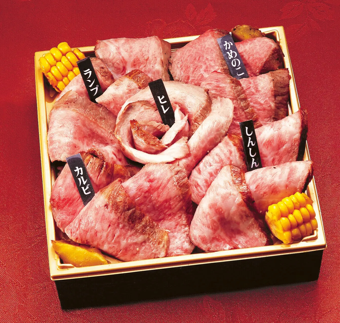 札幌<八軒苑>サロマ和牛ヒレステーキ入り5種の部位食べ比べ弁当