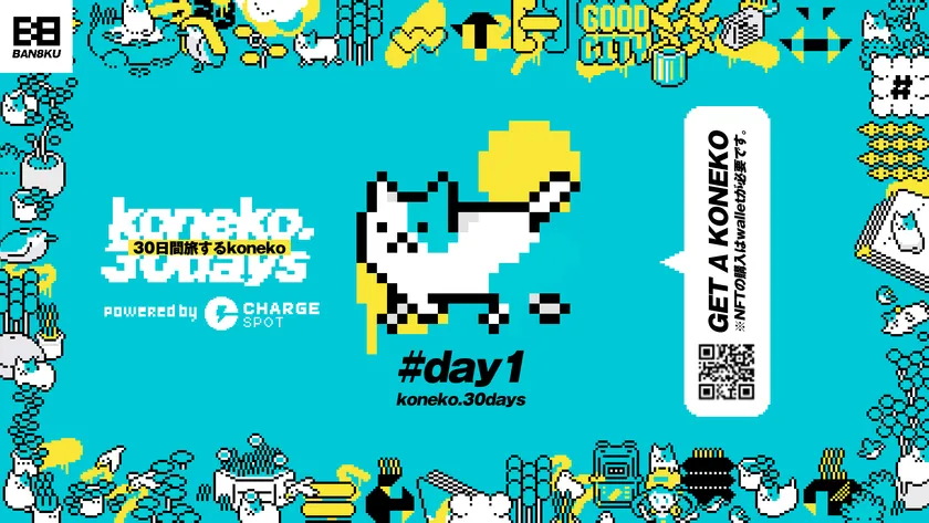 今年デビュー10周年を迎える人気ピクセルアーティストBAN8KUのkonekoが、渋谷駅~原宿駅周辺のスマホ充電サービス「ChargeSPOT」のデジタルサイネージ100台に放し飼いに。2023年9月15日から30日間、毎日新しいkonekoが登場し、konekoのNFTもゲットできる。