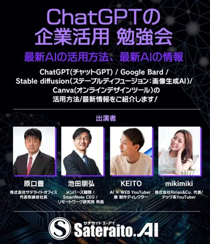 サテライトオフィス、第4回「ChatGPTの企業活用 勉強会」 「バックオフィス業務でChatGPT活用術編」を9月15日から開催 ~バックオフィスの効率化に向け、ベストプラクティスを紹介~