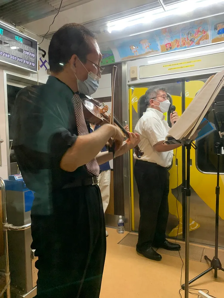 ・車内にて、名張市在住の村井 玄氏によるヴァイオリン演奏のほか、