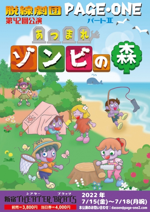 脱線劇団PAGE・ONE(主宰:西谷尚久)第42回公演『あつまれゾンビの森』が2022年7月15日 (金) ~2022年7月18日 (月・祝)にシアター・ブラッツ(東京都新宿区)にて上演されます。