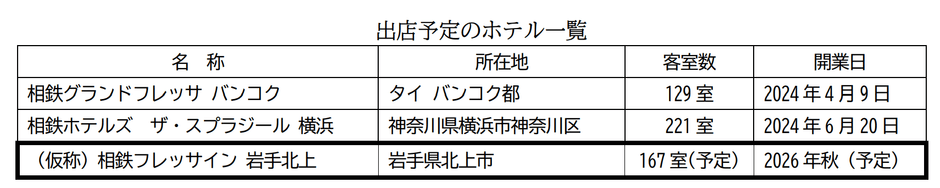 相鉄グループの㈱相鉄ホテルマネジメント(本社・神奈川県横浜市西区、社長・加藤 尊正)は、2026年秋に、岩手県で初となる「(仮称)相鉄フレッサイン 岩手北上」(以下、同ホテル)を出店します。