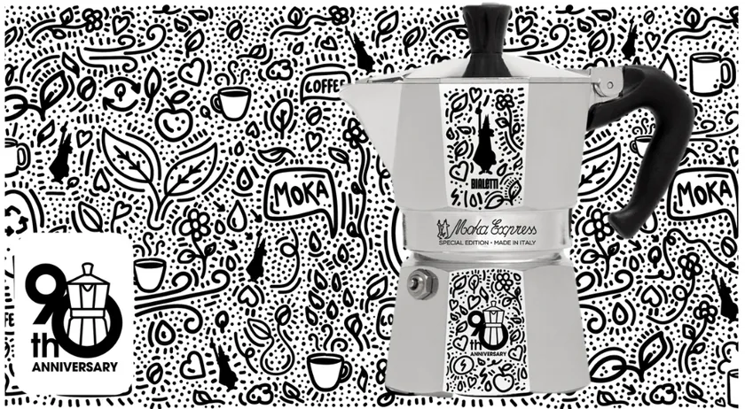 イタリアを代表するコーヒー器具メーカー、ビアレッティ(Bialetti)は、イタリアン・アイコンの「モカエキスプレス」誕生90周年を記念し、ロンドンのアーティスト兼イラストレーターのミスター・ドゥードゥル(Mr Doodle)こと、サム・コックス(Sam Cox)とのコラボレーションによるモカエキスプレス90周年限定バージョンを2023年10月1日より販売開始いたします。