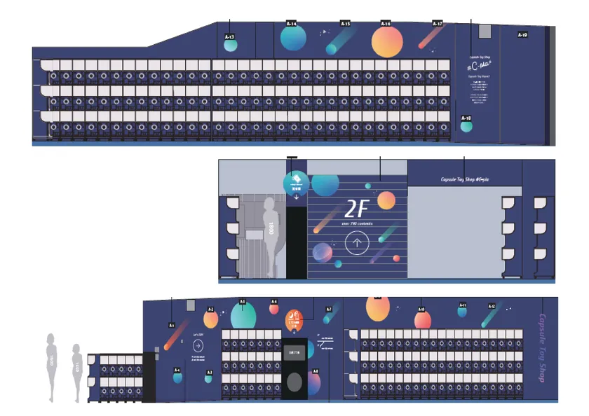 デジタルとカプセルトイの融合がメインテーマ。「#C-pla」のベースモチーフ「惑星」の世界観に子どもから大人までワクワクできる仕掛けを詰め込んだ魅力的な空間を目指しています。
