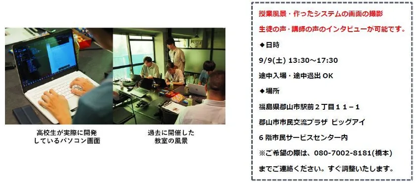 【福島県内初】郡山の高校生・大学生向け!市も後援。 手軽にAIシステム開発を学べる教室を9/9(土)に開催!
