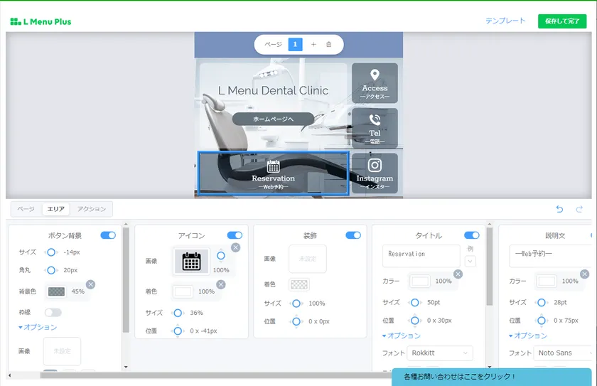 ・ボタンのアイコン、タイトル、サイズ、色などを細かく調整できる機能