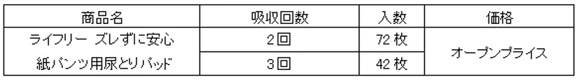 そこでこのたび、ご利用者様の使用実態に合わせて『ライフリー ズレずに安心 紙パンツ用尿とりパッド』より大入り数パックを発売することとしました。