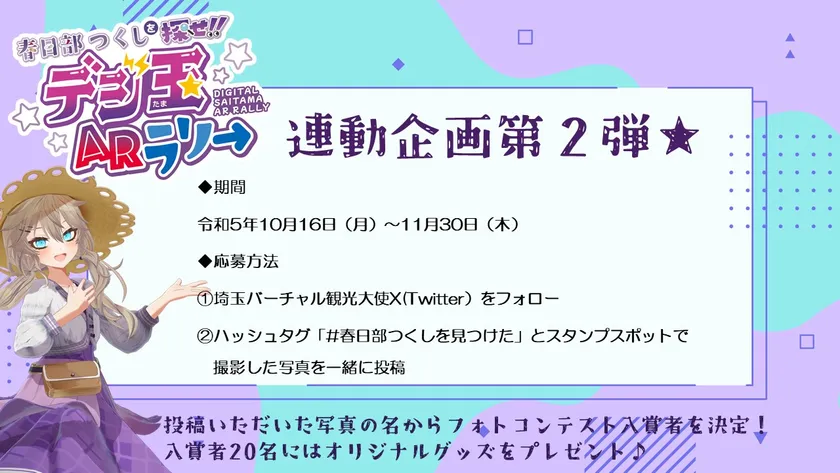 ・デジ玉ARラリー期間中に埼玉バーチャル観光大使公式X(Twitter)から参加できるキャンペーンを同時開催します。