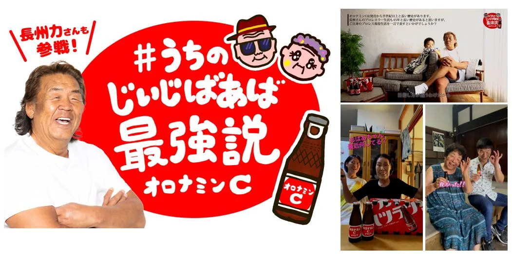 様々なことに興味を持ち、スマートフォンやPCを通じてSNSやインターネットを活用する、元気なデジタルシニアの方々に注目が集まっています。アプリを開発するおばあちゃん、SNS等で積極的にファッションの情報収集・発信を行うおじいちゃん、ゲームが大好きなおばあちゃん等、全力で“好き”を楽しんでいる人たちがいる今はまさに『じいじ・ばあば元気ハツラツ時代』です。9月18日の敬老の日に向けて、オロナミンC ドリンクを長年愛し続けてくれている“元気ハツラツ”なおじいちゃん・おばあちゃんにオロナミンC ドリンクと一緒に自分の好きなことを伝えてもらいたいと思い、本企画が始動しました。元プロレスラー・長州力さんを含め、じいじ・ばあばが元気に活躍している人気TikTokクリエイターの皆さんが参加し、懐かしいCMソング「あの人に会いたい」のBGMに乗せた動画を随時投稿。各クリエイターの「#うちのじいじばあば最強説」動画コメント内で、じいじ・ばあばの最強エピソードをお待ちしています。