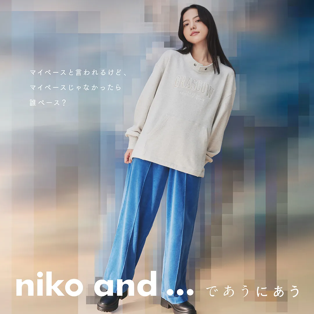 niko and ... は、アパレルや雑貨、家具、飲食を展開する“style editorial brand”です。実用性だけでなく、どこかユーモアを感じさせるアイテムをラインアップしており、意外な驚きと発見に“であう”、やがて自分のライフスタイルに“にあう”。そんなメッセージのもと、20~30代の男女に向けて事業展開しています。