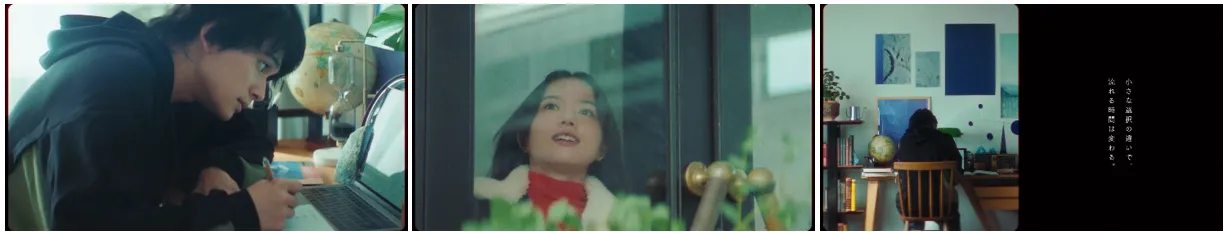本動画のテーマは「時間」。私たちの日常は、その時々でどんな行動をとるか「選ぶこと」の連続によってつくられています。人それぞれの感じ方で選んでいるため、日常は誰一人として同じものになることはありません。北村匠海さんは日々家に引きこもって研究作業をしている大学院生を、清原果耶さんは街にお店を構える「なんでも修理屋さん」を演じます。普段は交わることなくそれぞれの世界を生きている二人が、あるきっかけで「時間の選び方」が変わり、出会いを果たす様子を通して、ブランドのキャッチコピーである”であう にあう”というメッセージを表現しています。ミュージックビデオ仕立てになっており、平成の名曲・the brilliant greenの「There will be love there −愛のある場所−」を、令和のシンガーソングライター・大橋ちっぽけさんがカバー。新たな印象の「There will be love there −愛のある場所−」を聴くことができます。
