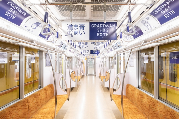 9月16日(火)から9月30日(火)の期間限定で実施されるトレインジャックでは、これまでの軌跡と未来への想いを込めた50周年記念秋冬キャンペーン「CRAFTMAN, SHIPS(クラフトマンシップス)」の世界観を車内に表現します。