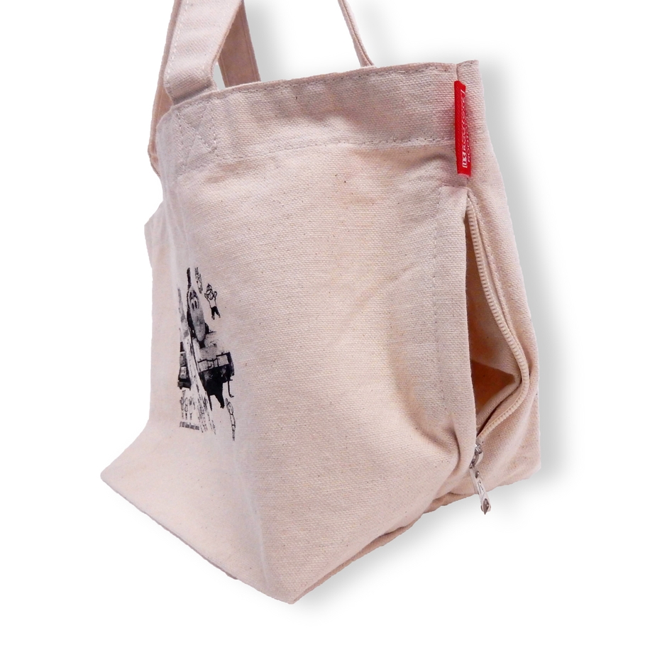 便利で丈夫なトートバッグにTシャツとお揃いの柄をデザインしました。
