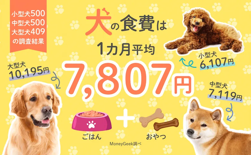 犬の食費について飼い主1,409人に調査した結果を公開! 月の平均は7,807円で、大型犬は1万円超え!