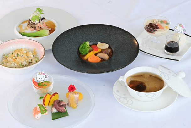 ハローキティ 盛り合わせオードブル/フカヒレ姿入り漢方蒸しスープ