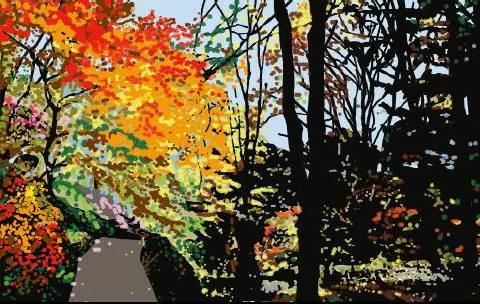 六甲山が見せる壮大な四季の移ろい。その美しさを丸シールという身近なアイテムを使って、来場者の皆様と一緒に完成させていく参加型ワークショップ作品です。11月23日までは、「秋の風景」をテーマにした作品を展示中。※画像は完成イメージです。