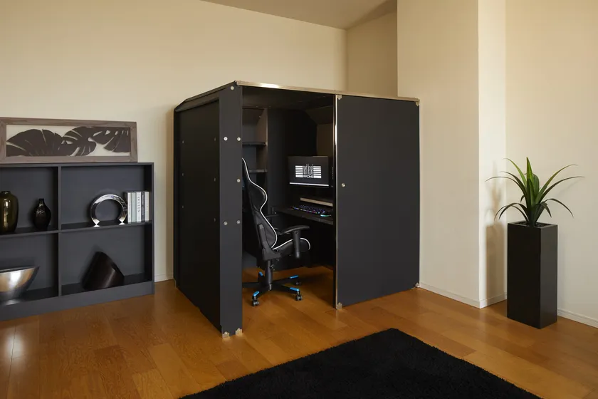 GAME基地は、「音のノイズ、視覚のノイズを排除し、周りへの騒音を気にすることなく、思う存分ゲームに没頭できる時間を楽しむ」ために開発されたゲーム専用防音ブースです。GAME基地は、ゲーマーならだれもが憧れる自分だけのゲーム空間を実現いたしました。