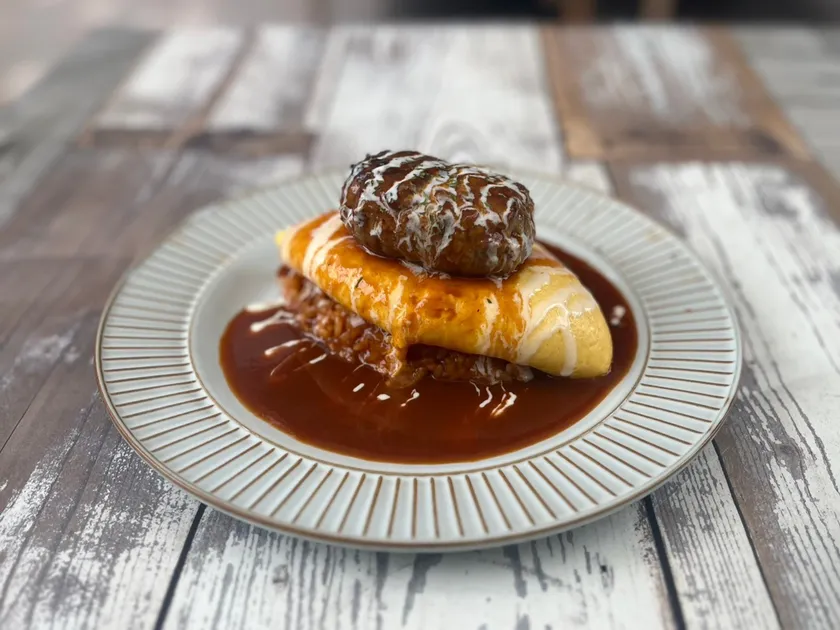 卵もお米も焼き立て・炒めたてにこだわり、ふわふわとろとろのオムレツと、ふっくらご飯に特製ケチャップソースが絡む香ばしさが、濃厚なチーズハンバーグにやさしい味わいをプラスしてくれる逸品です。