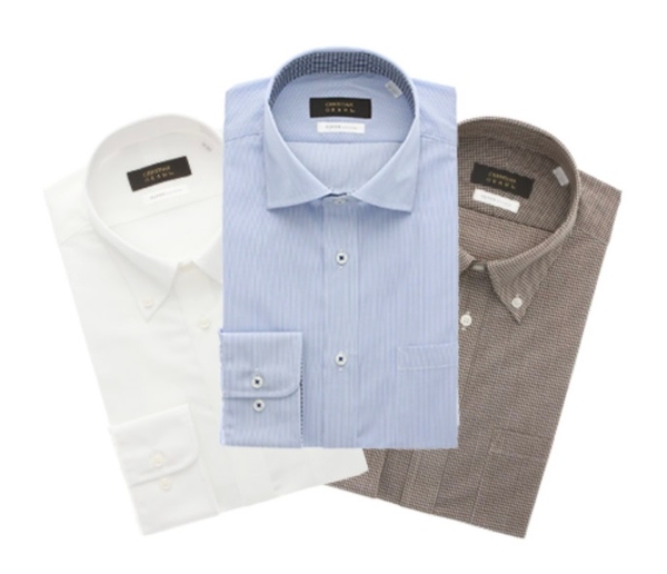 また、この商品は一般的なビジネスシャツと比べて約10%軽量化(当社比)している他、吸水性と速乾性にも優れており、夏場でも軽やかでサラッとした着心地を体感できます。襟型はワイドカラーに加えてノーネクタイ用のボタンダウンカラーも展開します。首回りサイズはS~LL(37cm~43cm)で、ホワイト・ネイビー・ブルー・グレーなど様々な色柄バリエーションを用意しています。