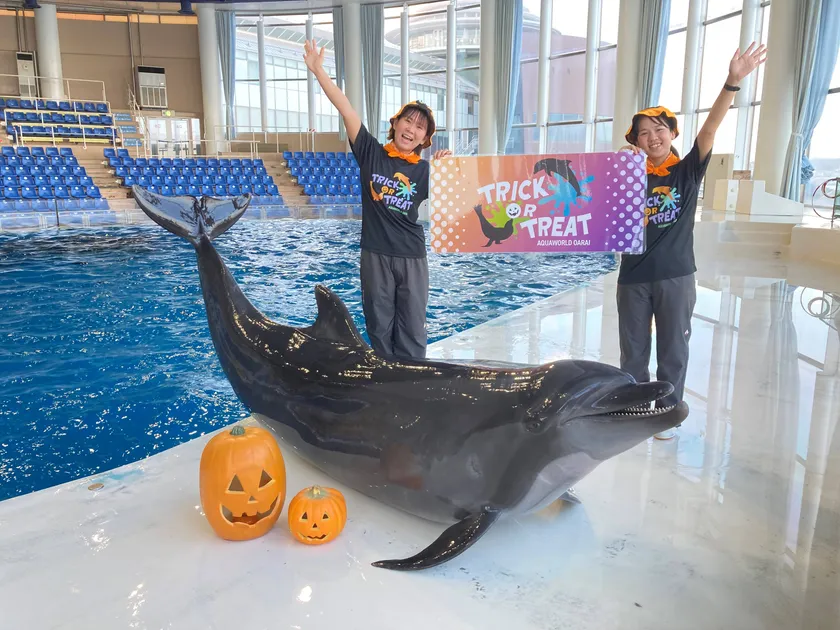 イルカのダイナミックなジャンプやアシカのコミカルなパフォーマンスが人気の「イルカ・アシカオーシャンライブ」では、ハロウィン気分を盛り上げる軽快な音楽とともに、生き物たちの元気いっぱいな姿をご覧いただけます。ハロウィンの衣装を着たトレーナーも登場し、生き物たちと息の合ったパフォーマンスでハロウィン気分を盛り上げます。