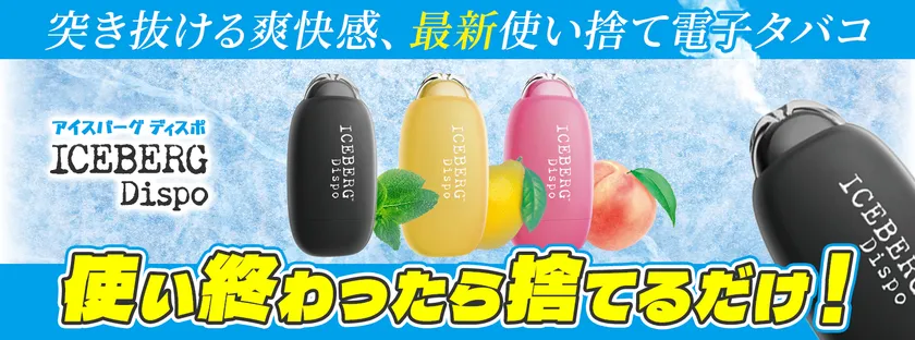 手軽で臭いもゴミも出ない使い捨て電子タバコ(VAPE)、 ICEBERG Dispo(アイスバーグディスポ)が販売開始!
