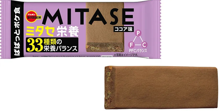 株式会社ブルボン(本社:新潟県柏崎市、代表取締役社長:吉田 康)は、33種類の栄養素をバランスよく配合したバータイプ商品「MITASEココア味」を2023年9月26日(火)に新発売いたします。