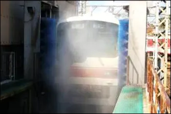 電車に乗ったままで、洗車機の中を通り抜けます。