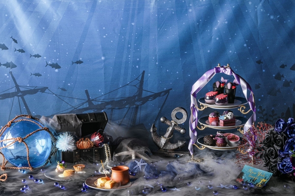 童話【人魚姫】の“海の魔女”の世界観をテーマにしたオリジナルデコレーションルームは、マーメイドが“海の魔女”に囚われた世界を表現。「マーメイドが深海の冒険に出かける」をテーマにした客室は、海底に潜む“海の魔女”の住処に一歩足を踏み入れると不気味な雰囲気が広がります。アフタヌーンティーは、 “海の魔女”に囚われたマーメイドをバイオレットスイーツで表現した「ダークプリンセスアフタヌーンティー~囚われのマーメイド~」をお楽しみいただけます。安心してゆっくりと優雅な時間をお過ごしくださいませ。