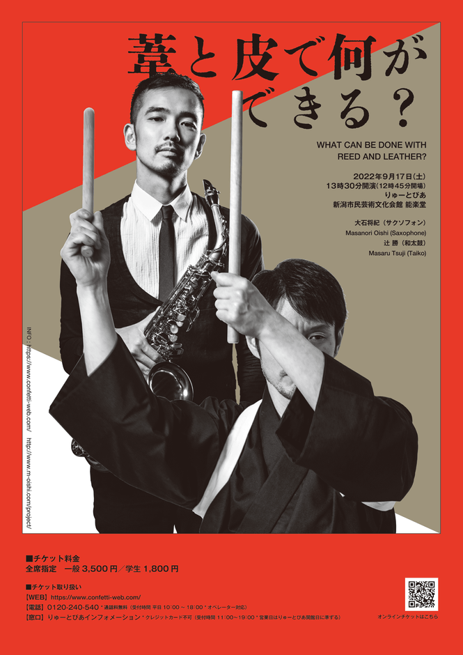 サクソフォンと和太鼓 2つの楽器の可能性を探るコンサート『葦と皮で何ができる?』開催決定 カンフェティでチケット発売