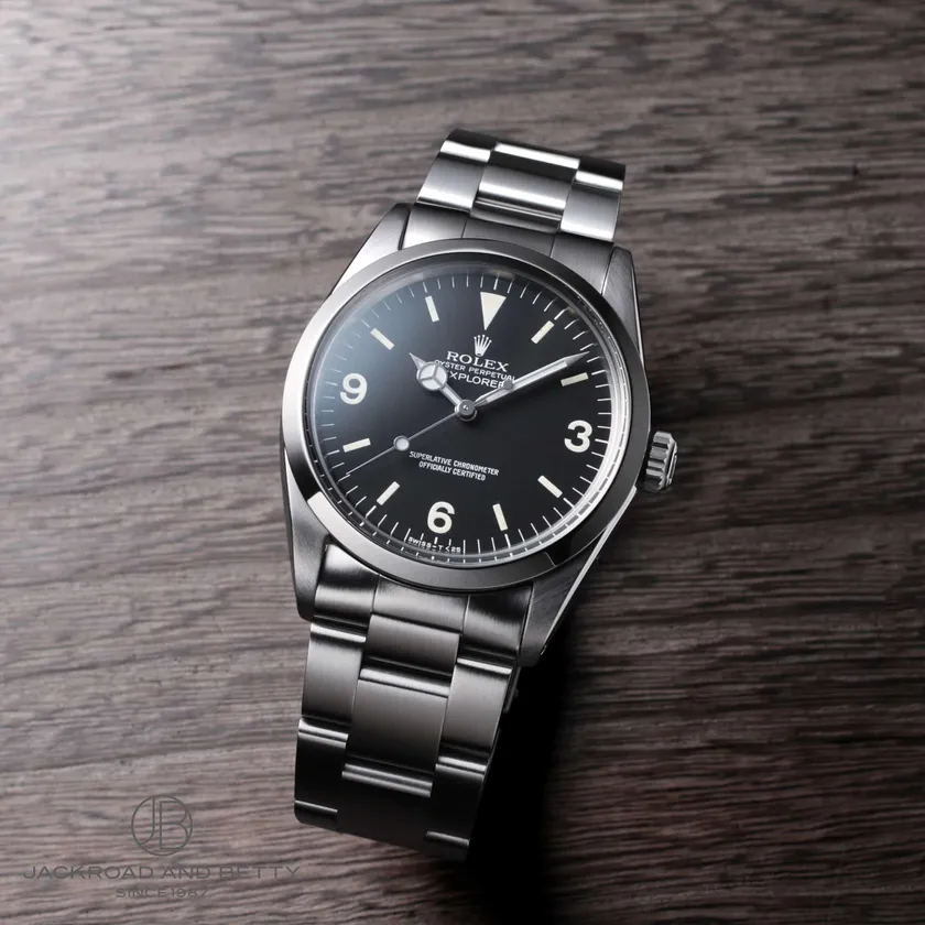 探検家を意味する名前の通り、過酷な環境にも耐えうる堅牢性や視認性を兼ね備えたプロフェッショナルモデル、ロレックス エクスプローラー。こちらは1965年に生産された個体で、丸みを帯びたインデックスがヴィンテージの雰囲気を演出します。今後もエイジングをお愉しみいただける希少な逸品です。