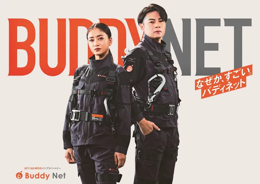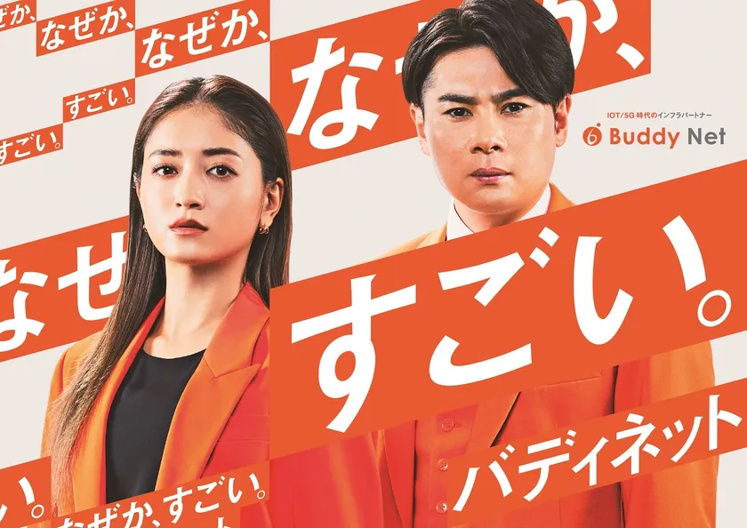 IoT/5G時代のインフラパートナー バディネット新WEBCM。 池田美優(みちょぱ)さんと平成ノブシコブシ吉村崇さんの本気のダッシュと ふたりの息のあった掛け合いに注目! 通信建設業界に現れた頼れるバディの2人が、 オレンジスーツと工事作業着のかなり目立つスタイルで 「なぜか、すごい。バディネット」を仕掛けていく!