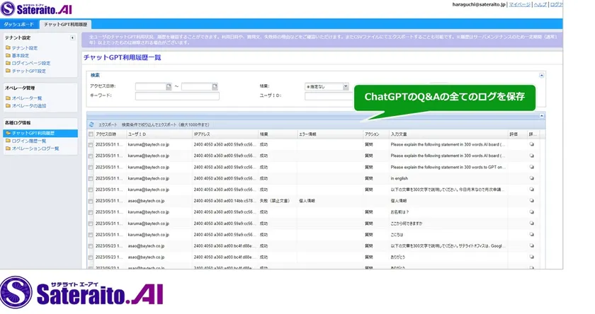 利用ユーザーを限定することができます。また、利用ユーザーからChatGPTへの質問やChatGPTからの回答をすべてログに保存することが可能です。