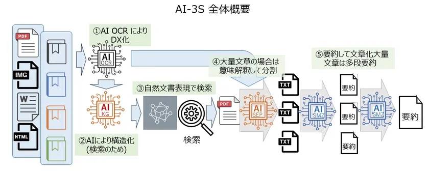 インダストリークラウドとデジタルマーケティングサービスを提供するユニファイド・サービス株式会社(本社:東京都港区、代表取締役社長:宇陀 栄次、以下 当社)は、AI・自然言語処理といった各種テクノロジーのソリューション提供・開発・保守・運用を行う株式会社pluszero(本社:東京都世田谷区、代表取締役 会長 兼 CEO 小代 義行/代表取締役社長 COO 森 遼太、以下 プラスゼロ)と共同で、大量文書要約の精度を飛躍的に向上させ、検索と結びつけるサービス「AIサーチ&サマリサービス(AI-3S)」の開発に成功しました。ユニファイド・サービスが提供するAI検索サービス「Encourage Japan」と、プラスゼロのAI技術力、実装力を組み合わせ、特殊文字や非定型を含む大量の文書を解析、AIで要約し、瞬時に要約された文章を生成、検索者の意図を理解して返答を返します。