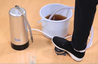 普段は蛇口に接続して浄水器として使え、災害時には付属の足踏みポンプに付け替えることで、停電時でも飲み水を作ることができます。1分間で2Lの水を浄水することができ、しかも、本体価格は66,000円(税込)で、ペットボトルを備蓄するよりも経済的です。