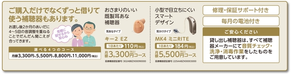 月額税込3,300円~ 定額にて補聴器を貸し出しいたします。使えるようになるか不安な方は、まずは補聴器を借りることから始めてみませんか?