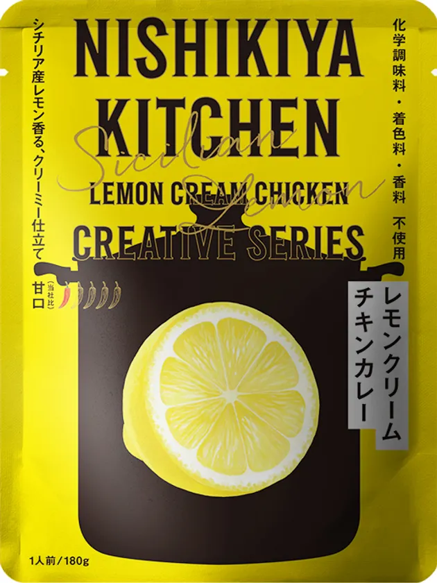 ニシキヤキッチン人気No.1の「レモンクリームチキンカレー」を、冬向けに濃厚に仕上げました。生クリームやクリームチーズが溶け込んだソースに、角切りのチーズを加えた濃厚なチキンカレーです。シチリア産レモンのほんのりとした酸味がアクセントの、寒い季節にぴったりの濃厚な味わいです。