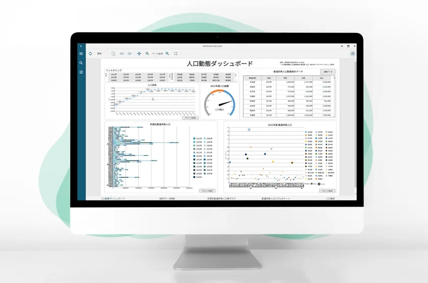 多彩なレポートコントロールを複数組み合わせることで、グラフィカルなデータ可視化を実現します。