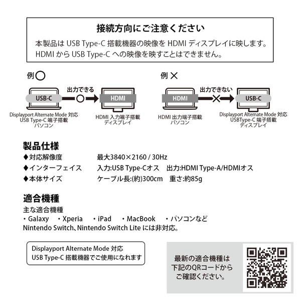 ※対応デバイスはUSB TYPE-Cポート搭載でDisplay Port Alternate Mode(ディスプレイポート オルタネートモード)対応機種に限ります。