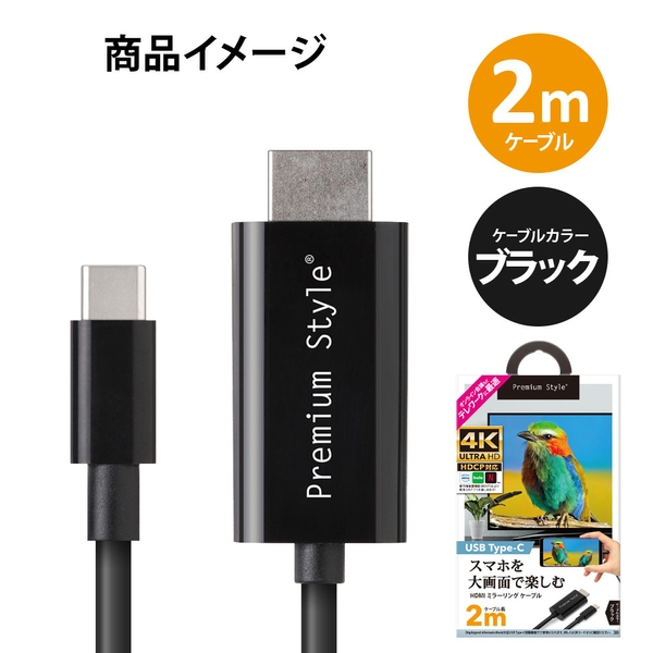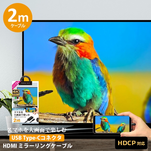 2mのケーブル長で取り回しし易いHDMIミラーリングケーブル