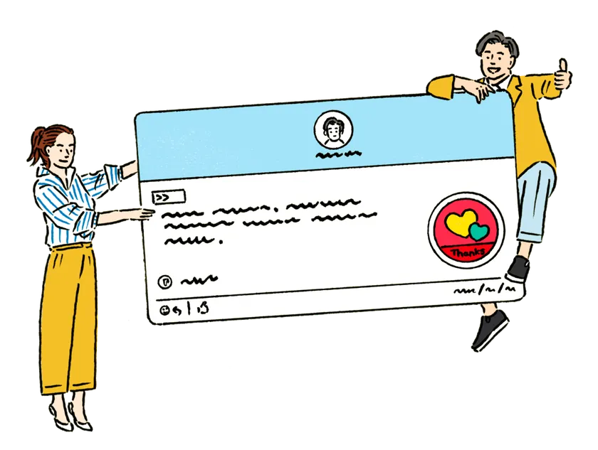 チームステッカーは、感謝と称賛を伝えるデジタルサンクスカードサービスです。Microsoft Teams と一体連携し、NECグループ様、長谷工グループ様等、働き方改革先進企業にご導入いただいております。