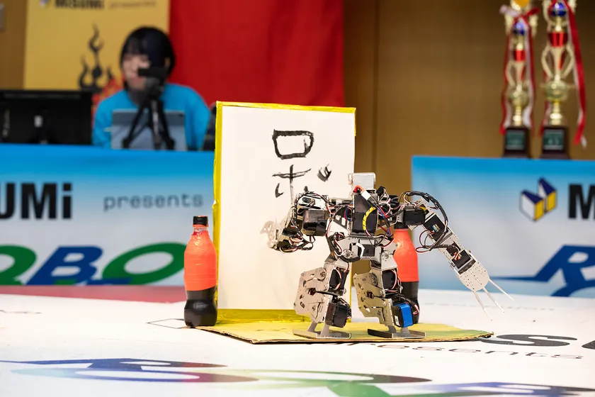 パフォーマンス部門で優秀な成績を収めたロボットに加え、各地方大会で優勝したロボットやランキング上位のロボットが参加するトーナメント方式の格闘技部門です。参加者が独自に設計したロボットに動作をプログラミングし、多彩な技で優勝を目指します。3分1ラウンドで先に3ダウン奪ったロボットが勝利です。リング上を高速に歩き回るロボットからダウンを奪うのは簡単ではありません。選手同士の駆け引きも見どころの一つです。