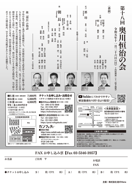 奥川恒治の会は観世流シテ方能楽師・奥川恒治主催の能楽公演です。