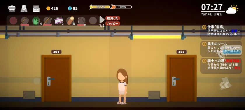 様々な行動をすることで、身体のステータスが上がり、生活スキルも上達します。スキルは就ける仕事に関係することもあるので、しっかり自分磨きをしましょう。