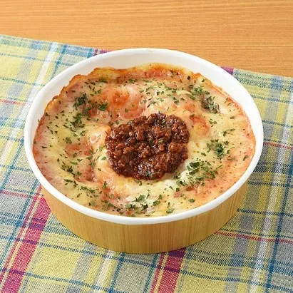 【内容】生パスタのもちもち食感と、とろっとしたホワイトソース、トマトのソース、ボロネーゼソースがまろやかに絡み合ったラザニアです。ソースのクリーム感をアップし、生パスタの厚みを変更することで、よりパスタとソースの一体感のあるラザニアに仕立てました。上にかかったたっぷりのチーズで、とろける食感も楽しめます。