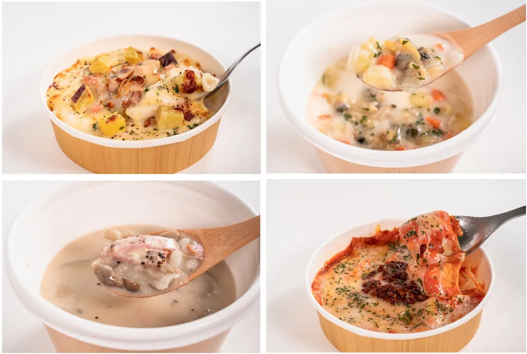 食欲の秋到来!とろ〜り濃厚な味わいをお届け! ほくほくでクリーミーな「さつまいもとチキンのグラタン」や きのこの香り広がる「3種きのことベーコンのクリームスープ」など 洋食メニュー4商品を9月19日(火)から順次発売