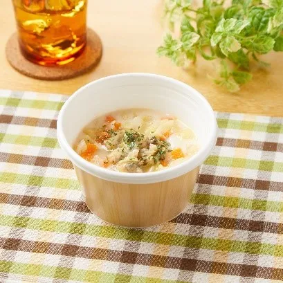 【内容】濃厚なミルクの味わいが特長のクラムチャウダーです。じゃがいも、人参、玉ねぎ、あさりをトッピングし、食べ応えのあるスープに仕立てています。あさりや魚介の旨みに加え、白ワインのコクにより食べやすい味わいに仕上げました。