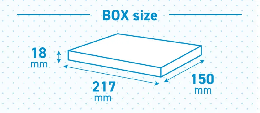 共通パッケージサイズ:よこ217mm×たて150mm×たかさ18mm