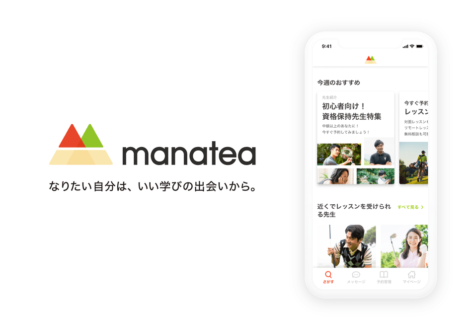 「なりたい自分は、いい学びの出会いから。」をコンセプトに、学びたい人と教えたい人が出会えるマッチングアプリ。現在は第一弾としてゴルフ領域で、レッスンを受けたいゴルファーとレッスンプロをつなぐサービスを展開。登録の先生は、日本プロゴルフ協会資格保有者やインスタグラムで人気のレッスンプロなど幅広く、学びたい方のニーズに合わせたゴルフレッスンを受けることが可能。